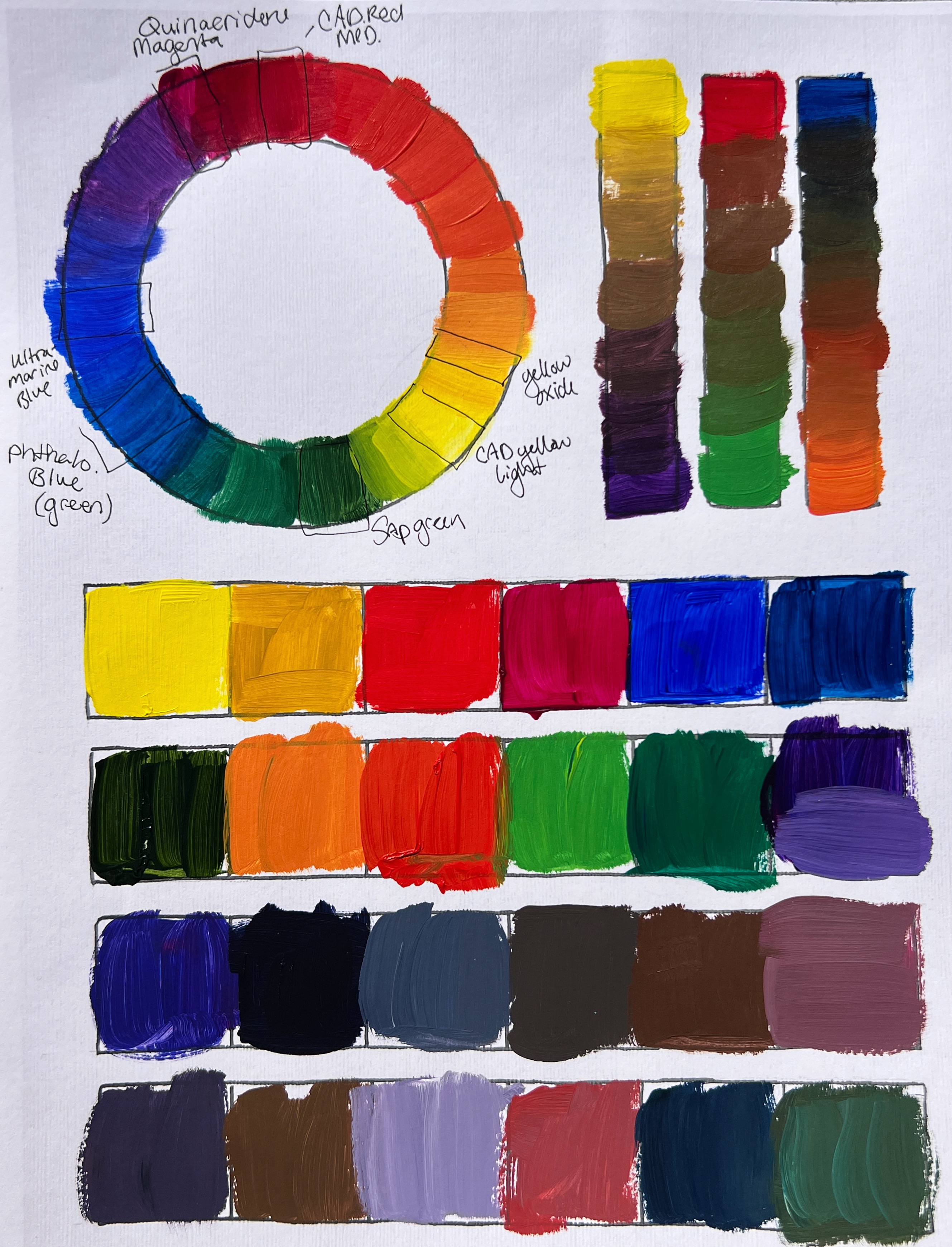 Below is my color wheel using these pigments.