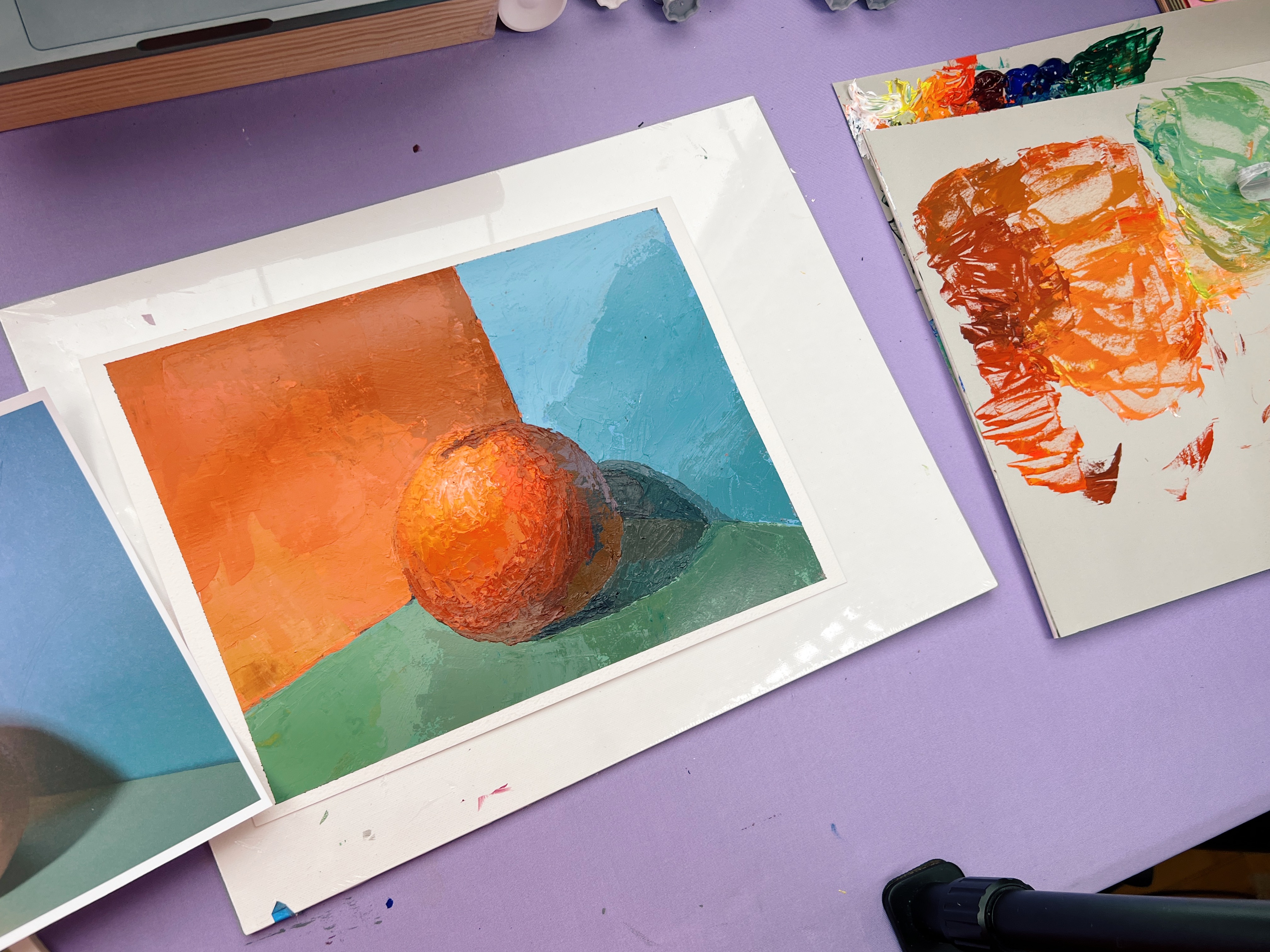 Yes, I’m aware this means we’re painting yet another orange citrus right after my previous demo. I had the same thought. But for the sake of the exercise, the color relationship mattered more than novelty.
